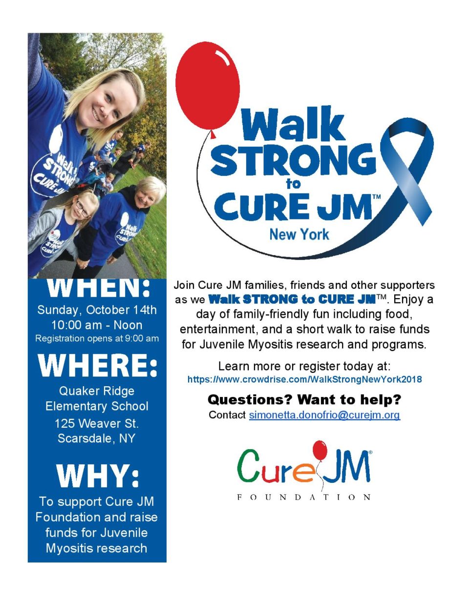 Charity, Westchester2nd Annual New York Walk Strong to Cure JM™ Posted on October 4, 2018October 1, 2018 by Stacy G 04 Oct Join us at the 2nd Annual New York Walk Strong to Cure JM™ Family Fun Event and Fundraising Walk! Registration opens 9:00am. Walk Festivities begin 10:00am. CLICK TO REGISTER OR GET MORE INFORMATION: https://www.crowdrise.com/WalkStrongNewYork2018 Stacy G It's What I Know. Who I know .Where I want to go. Harvest on Hudson Brings Back THE WINE CRUSH Women Who Matter Luncheon with Kathie Lee Gifford 11/16 @ Greenwich Country Club