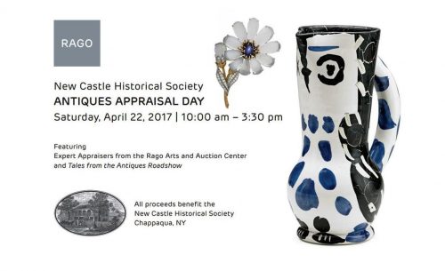 The appraisals will be conducted at the Greeley House by special guest experts Sebastian Clarke (generalist), Katherine Van Dell (jewelry), Mick Byers (fine art), and Jennifer Pitman (silver), of the Rago Arts and Auction Center.