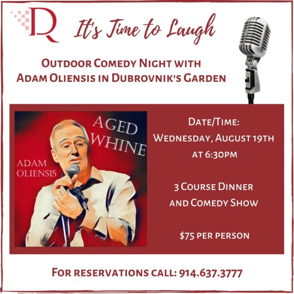 Dubrovnik Restaurant is Hosting an Outdoor Comedy Night with Adam Oliensis, August 19th at 6:30pm!