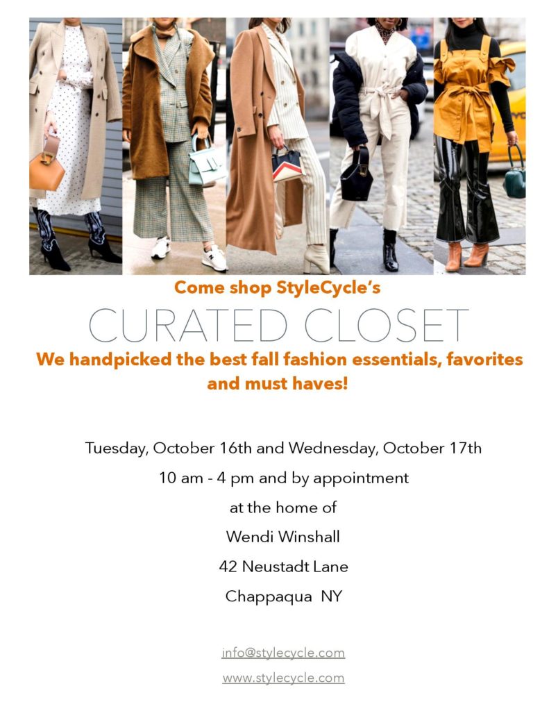 On Tuesday, October 16th and Wednesday, October 17th, StyleCycle invites you to experience its first-ever curated shopping event at the home of Wendi Winshall, 42 Neustadt Lane in Chappaqua, NY.