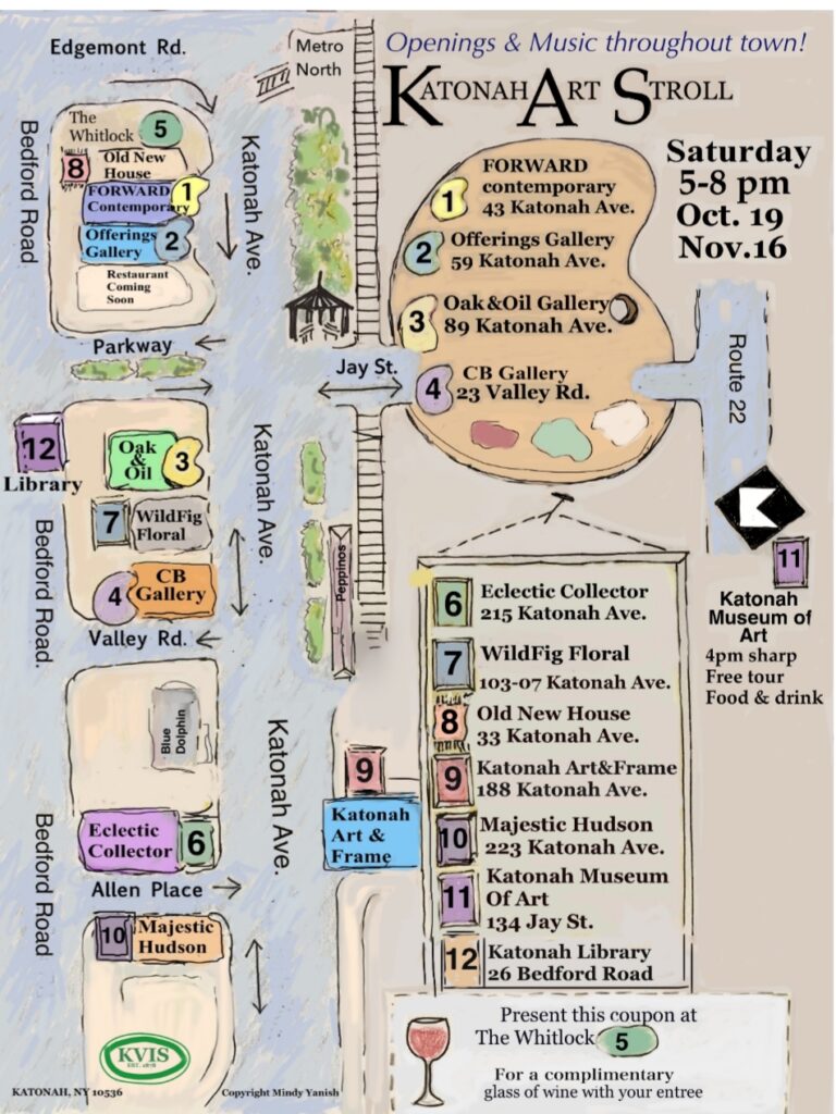 The Katonah Village Library (26 Bedford Rd.) will also be on hand this stroll with 51 works of art in various mediums from artist members of the Katonah Museum of Art Artists Association. Refreshments will be served. (katonahlibrary.org)