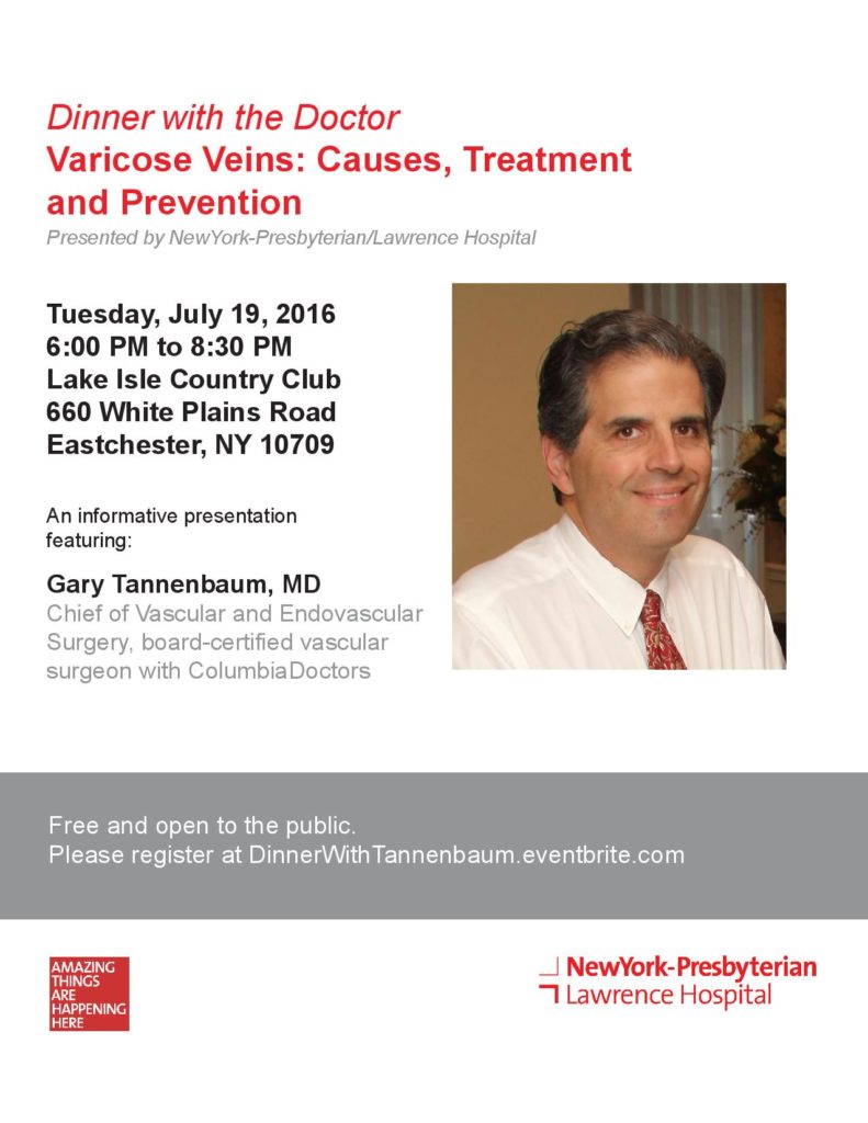 Dinner with the Doctor: Varicose Veins – Causes, Treatment and Prevention