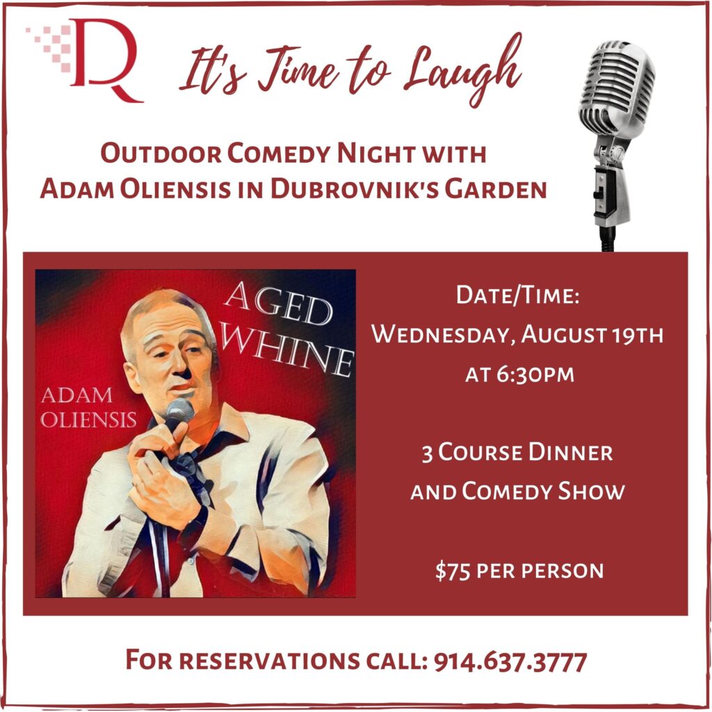 Get together with friends and family for a night filled with laughter and delicious food. Dubrovnik Restaurant is hosting an outdoor comedy night with special guest comedian, Adam Oliensis. Adam is a well-known stand-up comedian, performing at comedy clubs all over New York City and surrounding areas as well as colleges, corporate & private events, synagogues, and theaters. He’s won a number of prestigious comedy awards including #1 Comedian for Hire in New York on Thumbtack.com for the past four years. Dubrovnik is offering a specialized, three-course menu! For reservations, please call Dubrovnik at (914) 637-3777. Price is $75 per person.