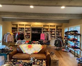We have some great furniture/a bunch of rugs all sizes/ dining chairs/nice sideboard hutch/ leather sofa/ antique tough table/ mid venture modern super chic desk/books/ more bikes than I have ever had and all are good/ grill/ lamps/ dining table/ cool modern side table Or desk/ bringing the NEW J CREW clothes to this sale. Many blazers size 2 and cashmere sweaters and other nice sweaters all NEW. Size 8 NEW J Crew shoes!! We have a bunch of costume jewelry and I have a beautiful diamond and gold necklace and 2 pearl necklaces. Tiffany ring. Tiffany heart necklace. Sterling…