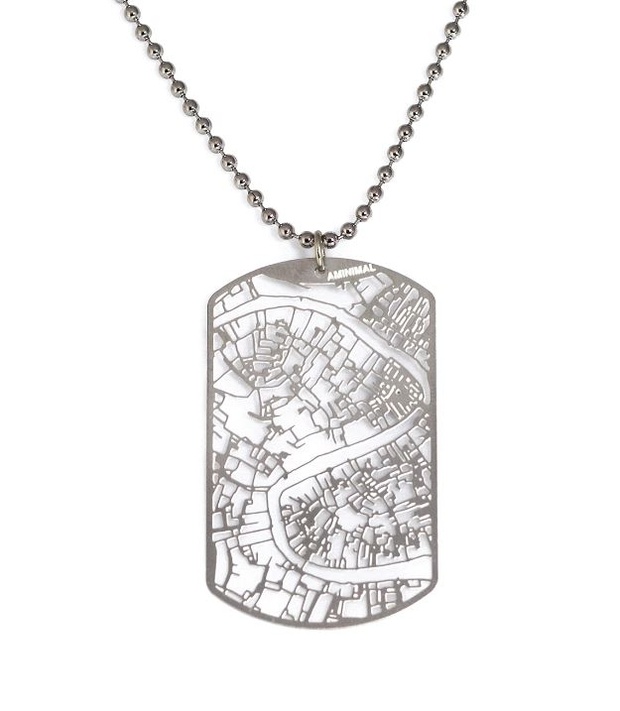 GPS Inspired Jewelry Urban Gridded Dog Tag Necklaces by AMINIMAL Studio