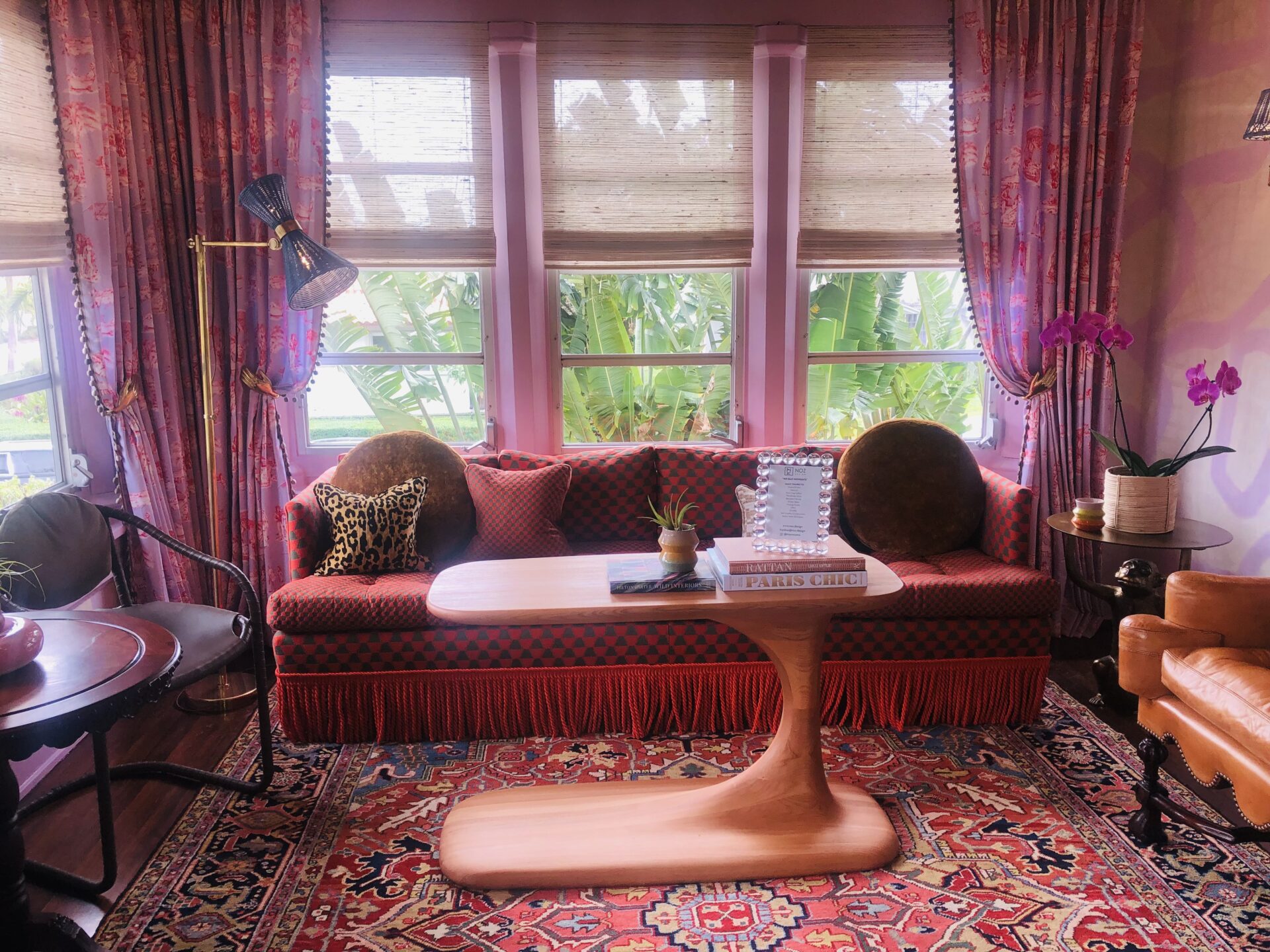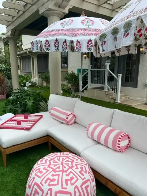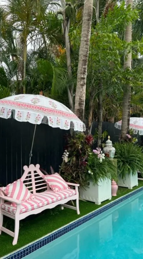 When you tour the house you will see 25 gorgeous brightly colored rooms filled with bold patterns and unique “old world Florida” accessories. I highlighted some of my favorite rooms below. But I was most taken with the outdoor space. I loved the pool area with the pink accents and block print umbrellas.