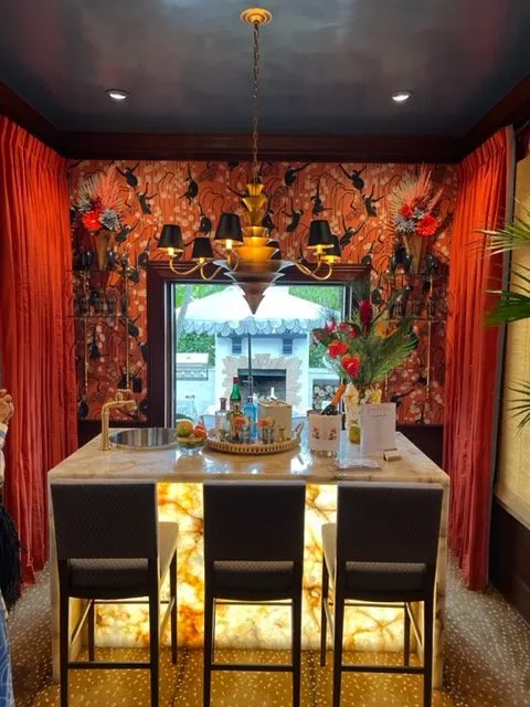 When you tour the house you will see 25 gorgeous brightly colored rooms filled with bold patterns and unique “old world Florida” accessories. I highlighted some of my favorite rooms below. But I was most taken with the outdoor space. I loved the pool area with the pink accents and block print umbrellas.