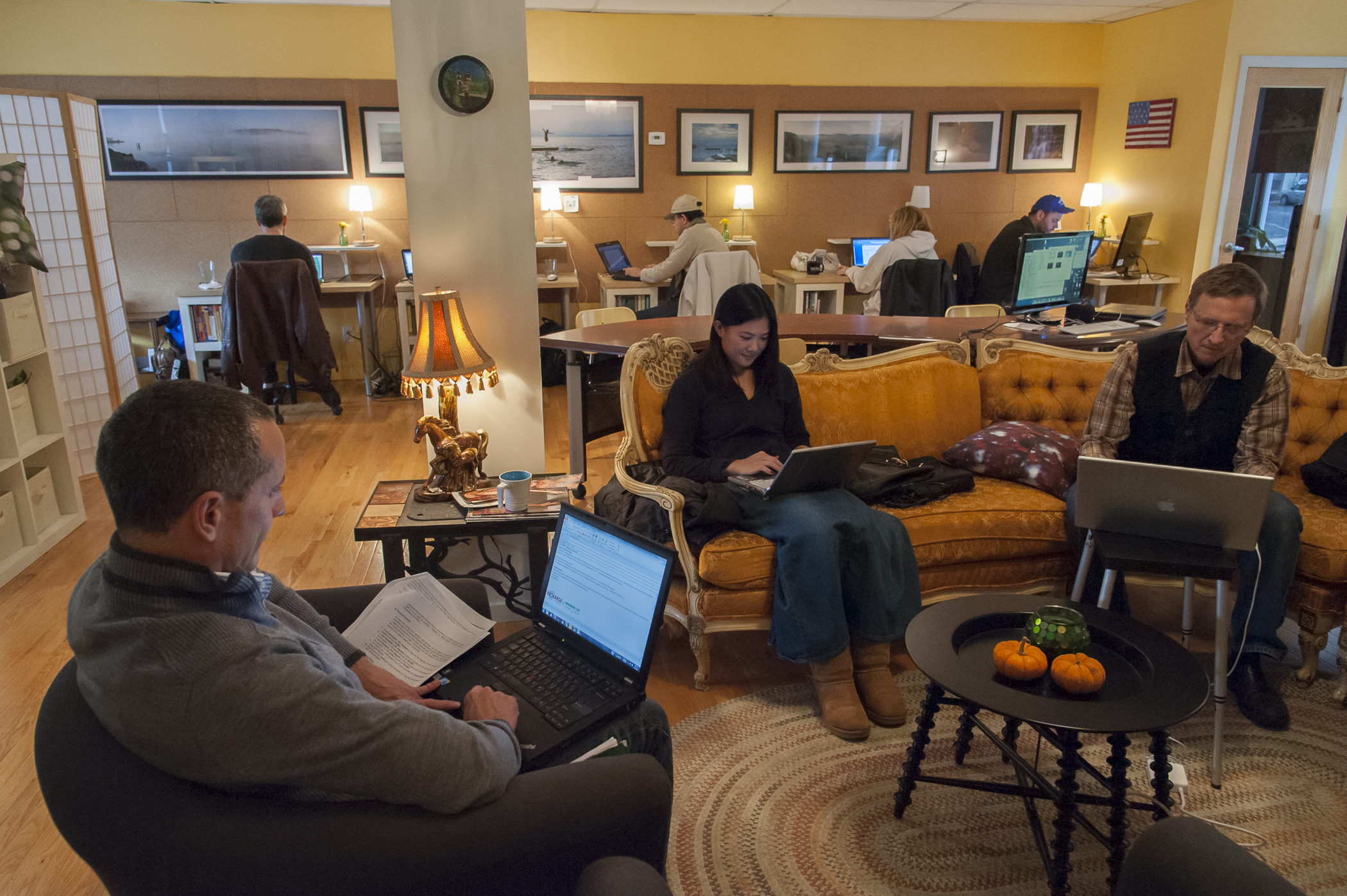 We currently have 62 members ranging from virtual mail-only to part-time users (1 day per month up to unlimited desk use), to full-timers who have their own desk or office. We also have numerous a la carte users who drop in for the day, or use our conference room for meetings or workshops. On a typical day, we have about 6-12 people working together under one roof, sharing AC and coffee, as well as leads and roadblocks. Its a real community.