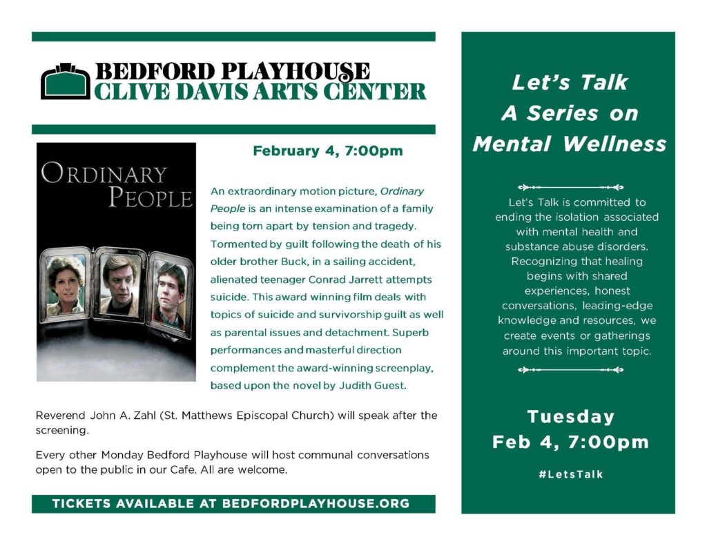 Don’t miss the upcoming screening of the award-winning and extraordinary film, Ordinary People on Tuesday, Feb. 4. at 7 pm at the @BedfordPlayHse.
