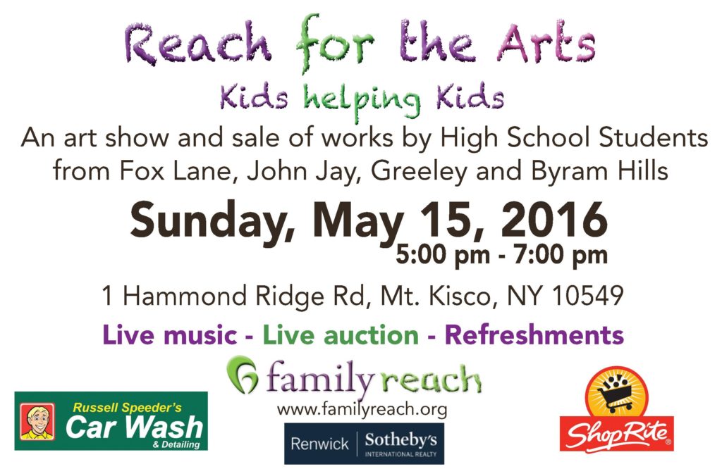 They have decided to do to help is create a leadership program where kids can join FRF and work together as teams with other kids to come up with creative ways to raise money to help these families in need. With this in mind, we are holding an an event called “Reach for the Arts” on May 15th. This is an event we’re local artists, including artists from our local schools are creating and donating artwork for sale. The proceeds will go to help the families in desperate need. Since we began three years ago we have raised approx. $200,000 and have expanded to four other local schools. Please join us in our event or if you’re unable to attend it would mean a lot if you could donate to our cause. www.familyreach.org/arts