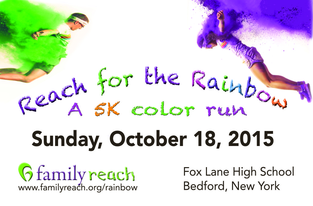 On October 18, 2015, the Family Reach Club at Fox Lane High School will hold a Reach for the Rainbow color run. This family friendly running race will begin at Fox Lane high school with a course that takes the runners down Succabone and Guard Hill roads. At various milestones during the race, non-toxic colors are sprayed on the runners creating the rainbows. The race ends with a block party at the high school.