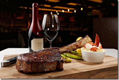 Steaks are dry-aged in-house using a dry aging cabinet and on full display. . Steakhouse favorites run the gamut from filet and t-bone to the dramatic long bone ribeye and porterhouse for two. Classic and not-so-classic side dishes include charred broccoli, truffle fries, and creamed spinach.