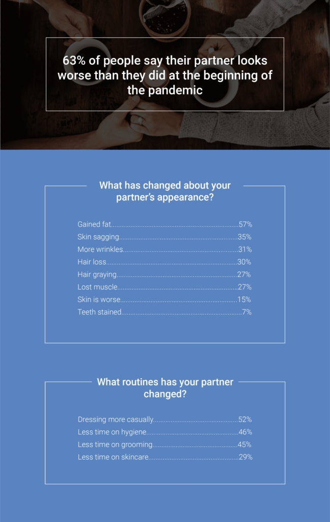 Whatever the reason, the data is in, and 89% of Americans in long-term relationships say their partner’s appearance has changed since the start of the pandemic.