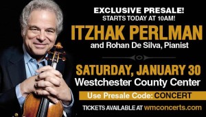 Reserve seats now for an evening with violin impresario Itzhak Perlman, accompanied by Rohan De [see more...]