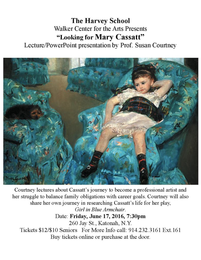 Playwright Susan Courtney will make a presentation called “Looking for Mary Cassatt” June 17 at 7:30 p.m. in the Lasdon Theater of the Walker Center for the Arts at The Harvey School.