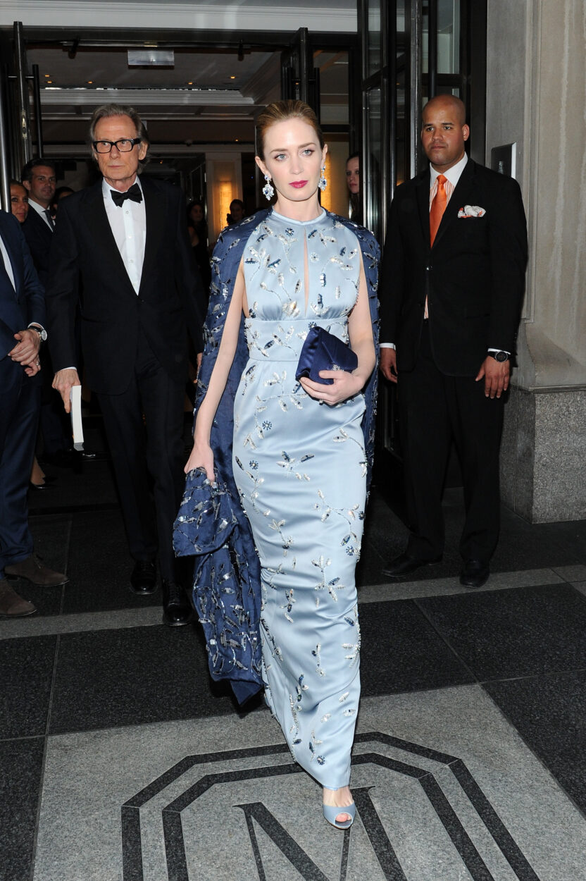 NEW YORK, NY – MAY 04: Emily Blunt (R) and Bill Nighy depart The Mark Hotel for the Met Gala at the Metropolitan Museum of Art on May 4, 2015 in New York City. (Photo by Andrew Toth/Getty Images for The Mark Hotel)