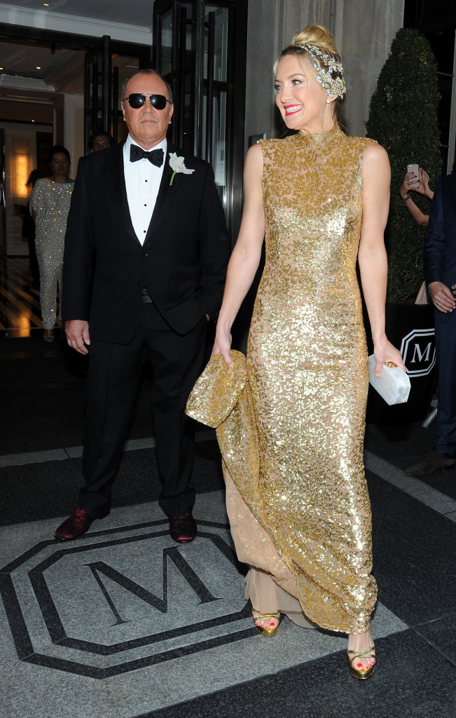 NEW YORK, NY – MAY 04: Michael Kors and Kate Hudson departs The Mark Hotel for the Met Gala at the Metropolitan Museum of Art on May 4, 2015 in New York City. (Photo by Andrew Toth/Getty Images for The Mark Hotel)
