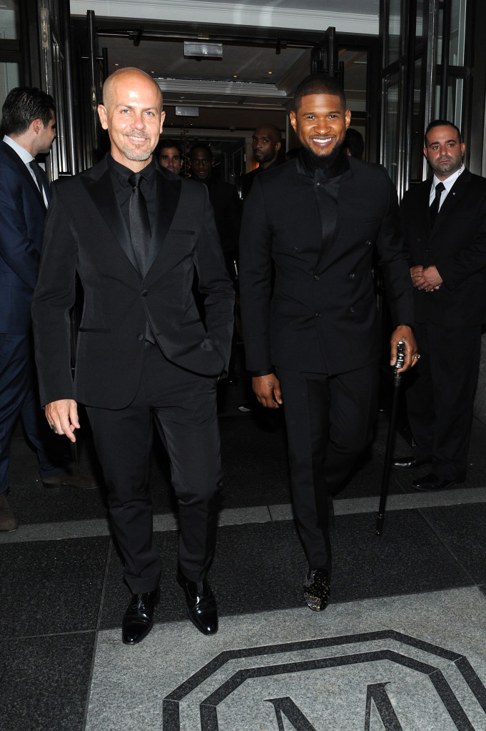 NEW YORK, NY – MAY 04: Usher (R) departs The Mark Hotel for the Met Gala at the Metropolitan Museum of Art on May 4, 2015 in New York City. (Photo by Andrew Toth/Getty Images for The Mark Hotel)