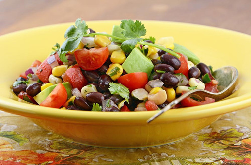 Instructions: Combine corn, beans, tomato, scallion, onion, cilantro, salt, and pepper in a large bowl. Stir in olive oil and squeeze fresh lime juice. Let the ingredients marinate in the refrigerator for about thirty minutes. Add avocado, and enjoy!