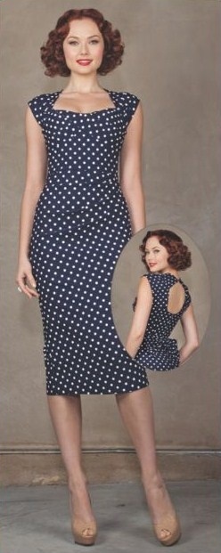 This dress is one of the most well known of this era, particularly during the first half of the decade. With a fitted bodice and a full skirt that ballooned out at the natural waistline, the variations were endless and allow for a plethora of options for the modern gal looking to sport a vintage look. You can find these designs with a number of necklines including V-neck, square-neck, scooped, boat-neck or sweetheart.
