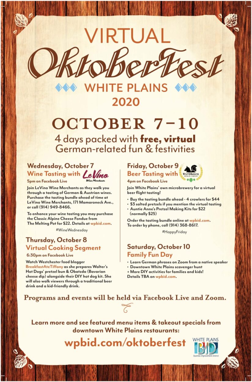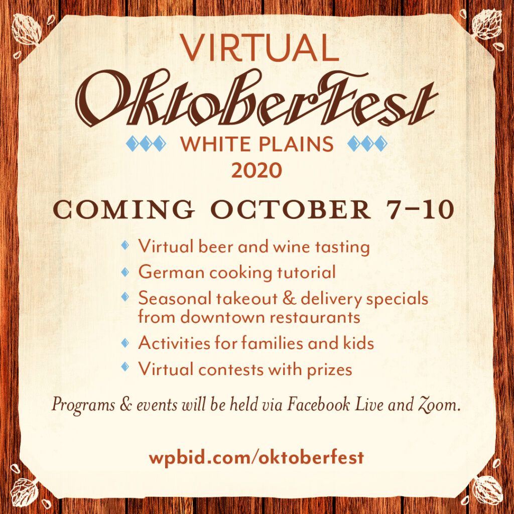 The 12th annual White Plains OktoberFest is going virtual! The online series will be packed with German-related fun and festivities. Treat yourself to:
