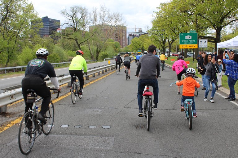 Westchester Parks Foundation closes off a six and a half mile stretch of the Bronx River Parkway for the exclusive use of bicyclists, joggers, scooters and strollers. Park your car at the County Center lot and bike to Scarsdale Road in Yonkers. Round trip 13.1 miles.
