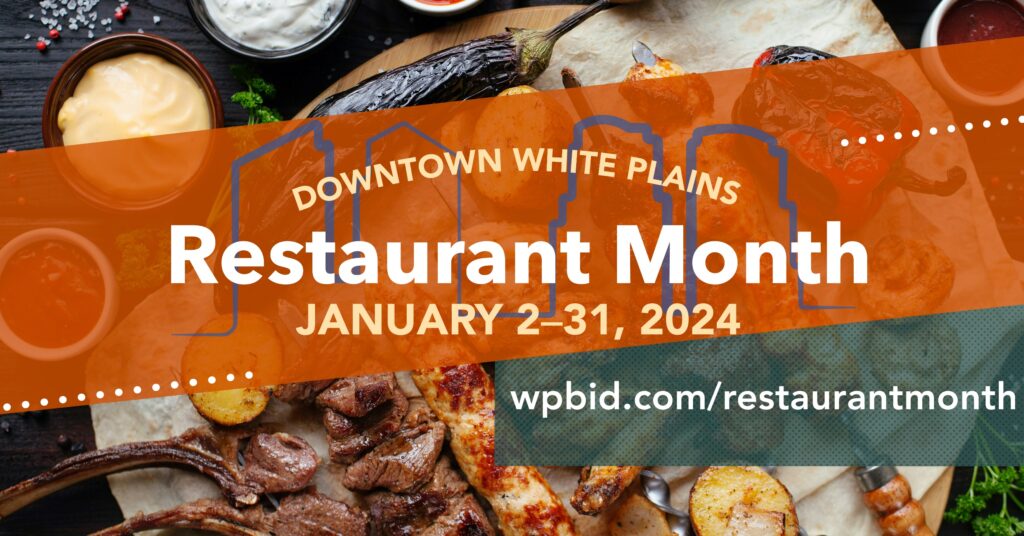 Restaurant Month is a program coordinated by the Downtown White Plains Business Improvement District, a nonprofit dedicated to promoting and supporting downtown White Plains businesses. Events Manager of the White Plains BID Jennifer Tillerson stated, “As the downtown White Plains community continues to grow, we want to highlight our eateries that make this area unique. One way we do this is by working with our local restaurants each year to bring people together and have them try something new. A huge percentage of our restaurants participate in this promotion and prepare creative offerings each January”