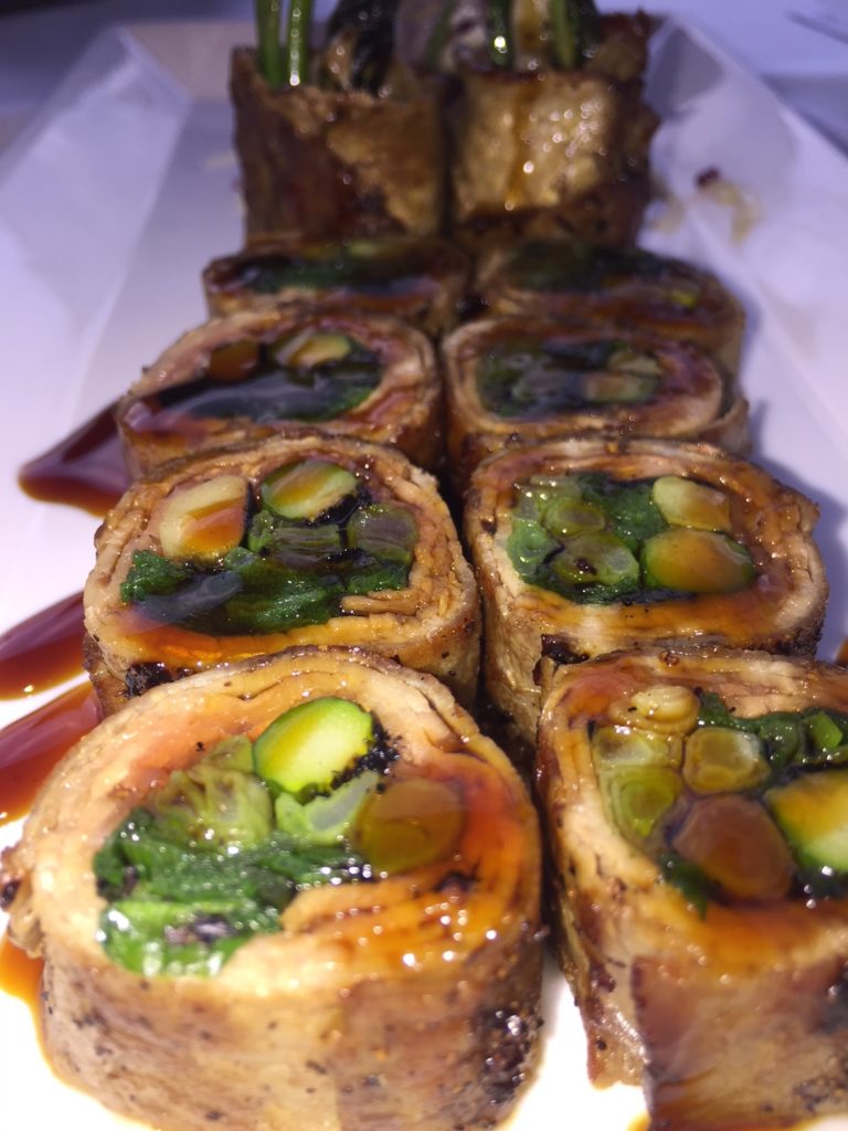 Beef Negimaki – Grilled asparagus and scallion wrapped in thinly sliced beef