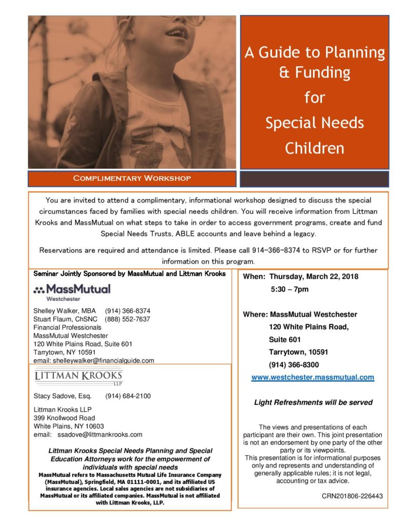 Lifestyle, WestchesterA Guide to Planning & Funding For Special Needs Children Posted on March 7, 2018June 19, 2018 by Stacy G 07 Mar Stacy G It's What I Know. Who I know .Where I want to go. “Letters to our Daughters” at Westport Country Playhouse to Celebrate International Women’s Day Good Eats at Bar Zepoli in Stamford