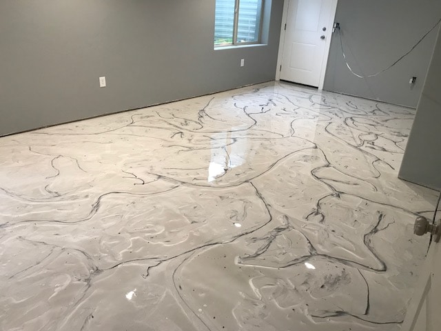 When these pigments are agitated with a roller or paintbrush, they gather, twist and separate and turn and reflect light at different angles. With this flooring, installers apply the product to the concrete floor of your showroom.