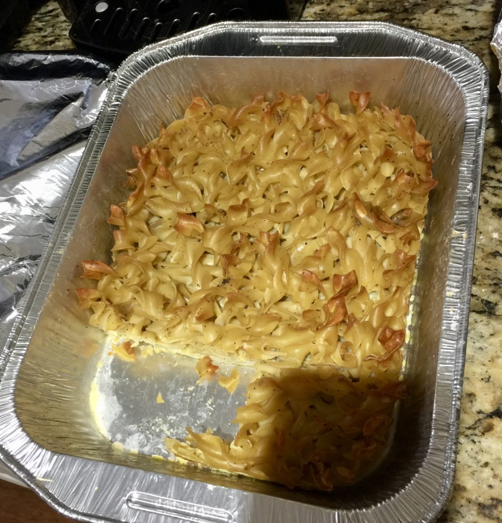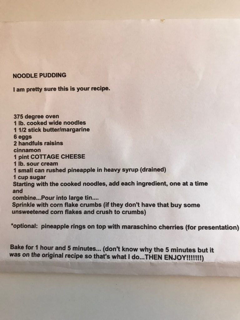 At our holidays we always had two different noodle kugels, one sweet and one plain. My cousin had these recipes and pictures on her phone. Of course she did, she is my cousin.