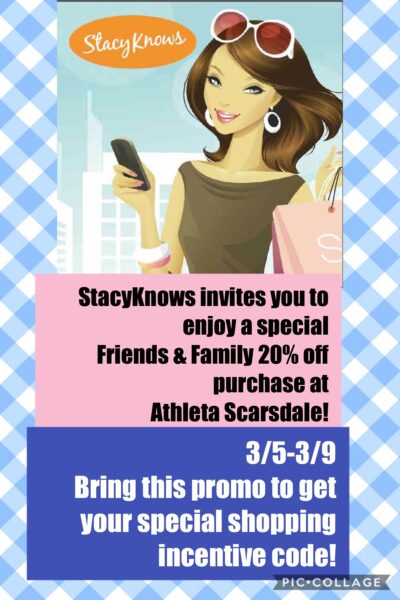 It’s that time again – friends and family 20% off purchase at Athleta Scarsdale. Don’t [see more...]