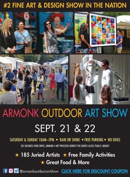 58th Annual Armonk Outdoor Art Show Ranked #2 in the Nation Saturday & Sunday, September 21 & September 22 10:00 am – 5:00 pm, Rain or Shine.