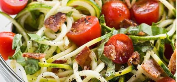 ZUCCHINI NOODLE SALAD RECIPE WITH BACON & TOMATOES