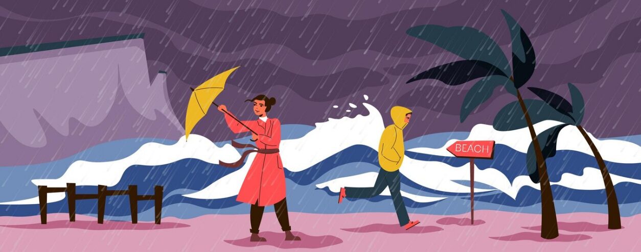 Image Source – https://www.freepik.com/free-vector/rain-storm-flat-concept-with-people-near-seashore-vector-illustration_58469098.htm