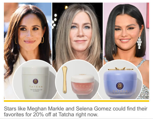 Stars like Meghan Markle and Selena Gomez could find their favorites for 20% off at Tatcha right now.