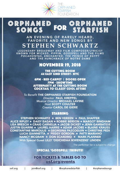 Please join us on NOVEMBER 19th to celebrate the music of legendary Broadway and film composer/lyricist Stephen Schwartz, known [see more...]