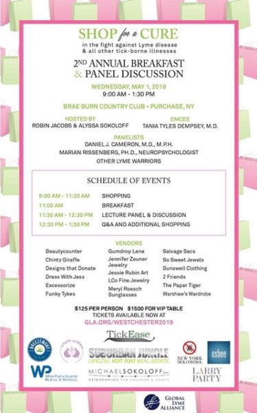 Global Lyme Alliance 2nd Annual Breakfast & Panel Discussion/ Shop for a Cure on May 1st at Brae Burn Country Club