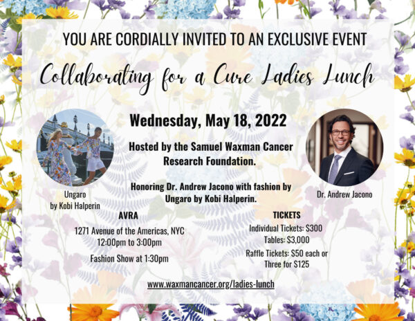Samuel Waxman Cancer Research Foundation Announces 9th Annual Collaborating for a Cure 2022 Ladies Luncheon and Auction