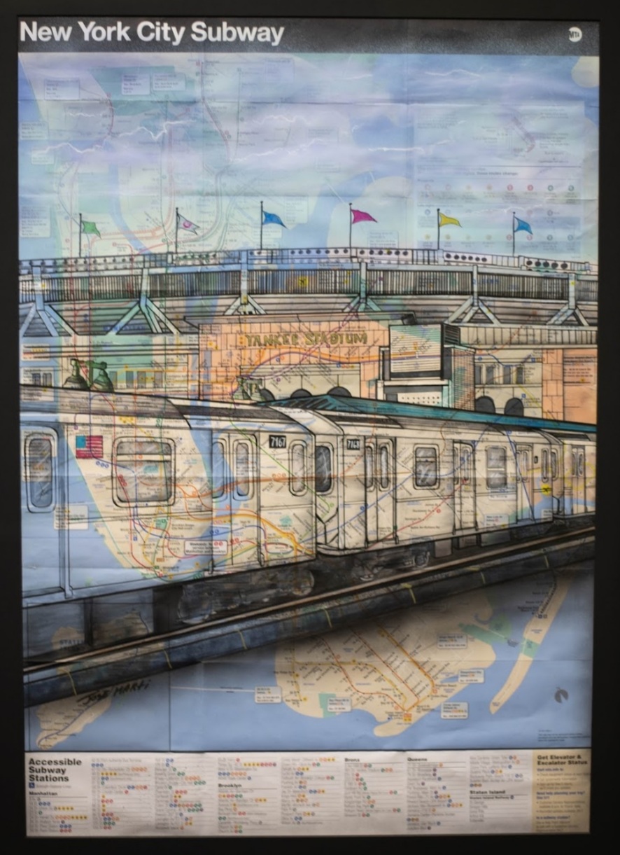 Born in Bushwick Brooklyn, Portchester resident and self-taught graffiti artist José Martí fell in love with art when he was 7 years old. “My father worked in the publishing business so I would study book illustrations for hours but it was when I first saw the work of legendary graffiti artists Lee Quinonez And Dondi White at the Hugh handball courts in Queens is the moment I fell in love with art,” Martí says, “I started tagging when I was 13 years old as a rite of passage really and sometimes even getting the nod from the police nearby” adding with a laugh “I guess they liked my work”. Martí’s work is mixed media using vintage (and newer) MTA subway maps as well as skate decks and empty spray cans as his canvas. “I love the feel of the vintage MTA maps and some of my works are based on memories of the old subway cars my friends used to paint on,” Martí explains. Currently, Martí juggles his time between painting and teaching martial arts at his Martí Marshall Arts Academy in Bedford Hills.