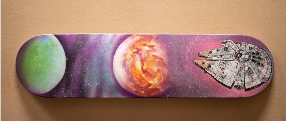 The Falcon – mixed media on skate deck – 8x31inches