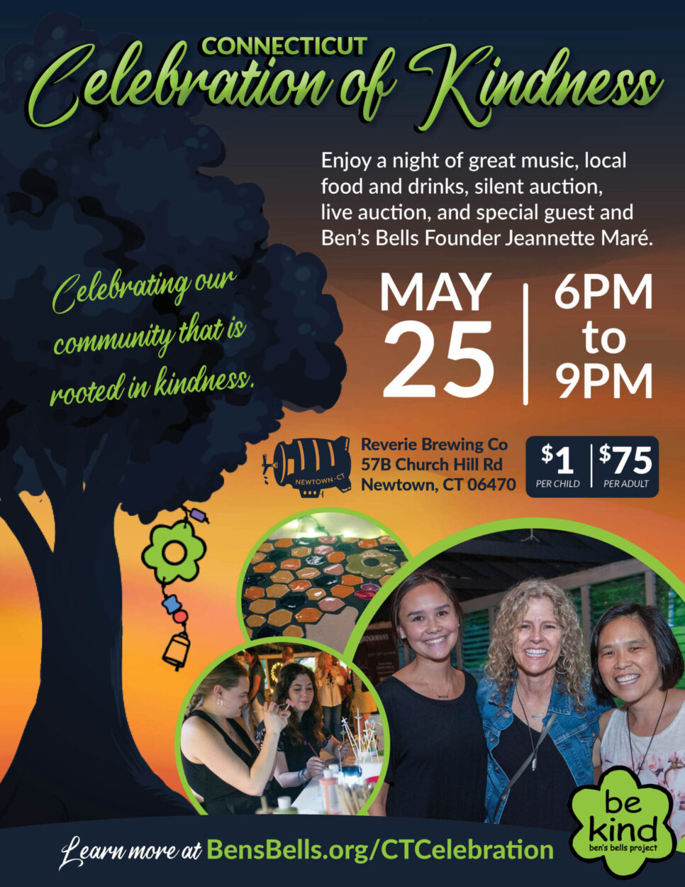 Join Ben’s Bells to celebrate kindness at their biggest fundraising event of the year! The evening will include live entertainment, food, drink, and a live and silent auction. Enjoy all of this while supporting kindness education and studio programming. We are also excited to announce that our Founder, Jeannette Maré, will join as a special guest as she makes her return to CT after several years.