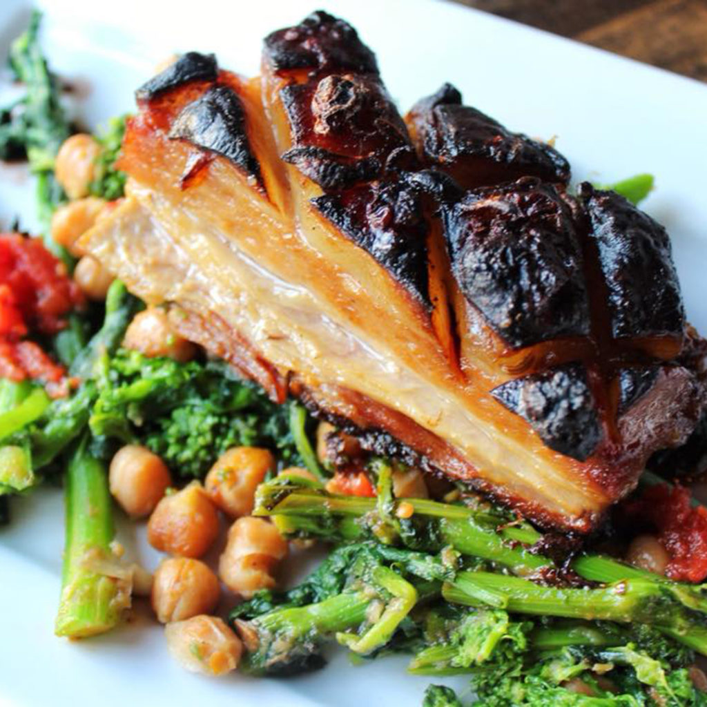 Next we dined on pork belly . Perfectly crispy!! Accompanied by Broccoli Rabe.   I could make a whole meal out of Broccoli Rabe, but that is another blog post.