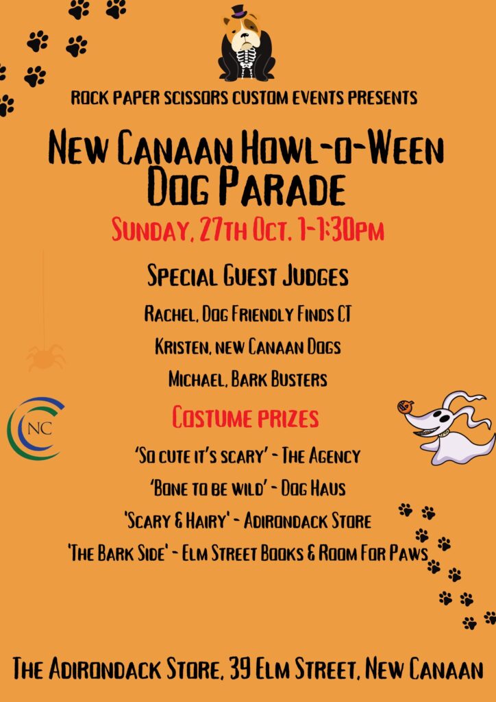The 2024 New Canaan Halloween Block Party returns on Sunday, October 27th and this year our four-legged friends will be joining in. Elm Street is closed to traffic from noon until 2pm and the inaugural ‘HOWL-O-WEEN DOG PARADE’ will take place between 1-1:30pm (weather permitting).