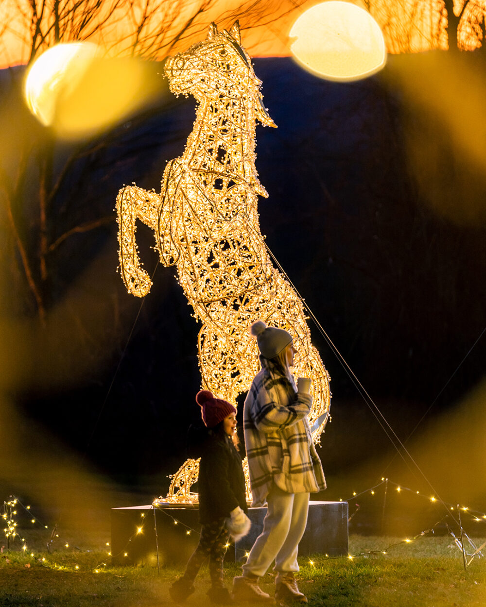 During the LUMAGICA experience, guests will enjoy enormous, illuminated displays including a 20-foot-tall reindeer and a soaring parrot offering plenty of photo ops as attendees wind their way through light tunnels all timed to a musical performance. To get into the spirit of the holidays, visitors can grab a warm drink and an illuminated wand on their way in to begin the trail. At the end of the trail, participants will be greeted by fire pits as well as hot food, cider donuts, and seasonal drinks available for purchase. It is a memorable holiday experience for all ages.