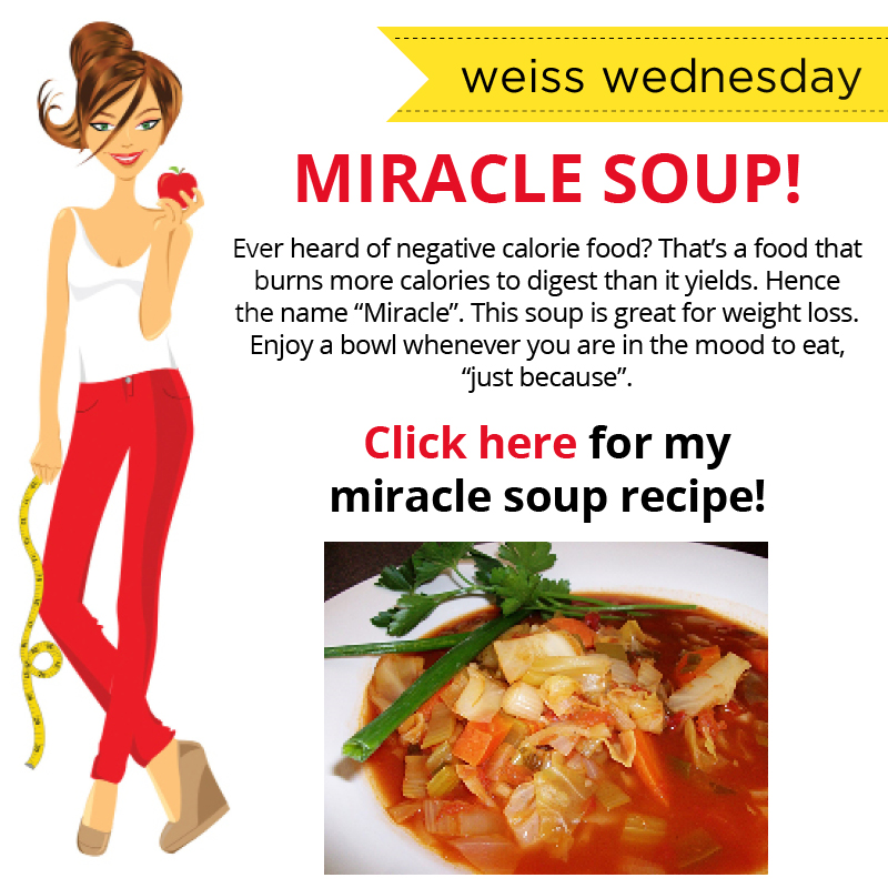 There are only 38 days left to Memorial Day. Let’s just say my eating and drinking habits this winter have not been stellar. Basically I need a miracle> Here it is , Miracle Soup from my friend Lyssa Weiss author of The Skinny Jeans Diet,