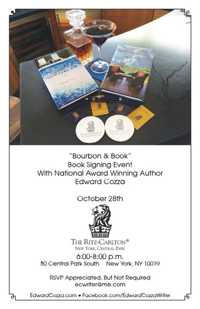 IPPY Gold Medalist and Beverly Hills Book Award winning novelist Edward Cozza will speak in the iconic Manhattan setting of the Ritz-Carlton New York, Central Park about the second novel of his Connection Series, Near Somewhere. The event,“Bourbon & Book,” will feature a bourbon tasting.