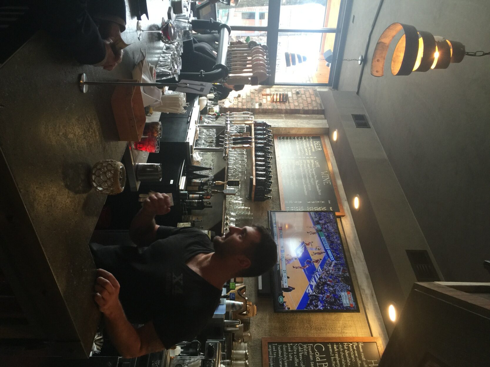 Communal seating, lots of large screen televsions adds to the party, plus craft beers and wines on tap bring out the most of this new casual dining space.