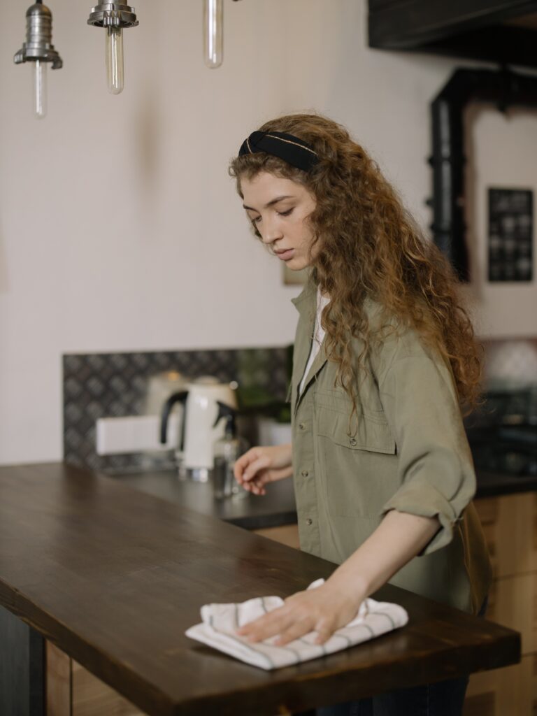 use protective cleaning gloves. These will protect your hands from scrapes when scrubbing away old dirt and stains. Always go for gloves with good chemical and puncture resistance like nitrile.