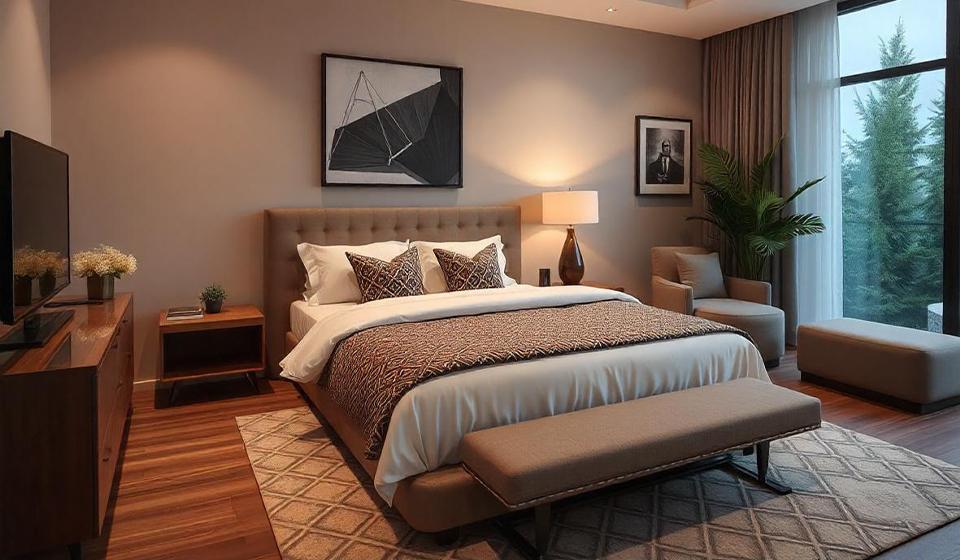 - Practical Lighting: The use of a bedside table for a light is common. It provides a less controlling and more focused way of lighting the environment, which is key in preparing for sleep or reading at night.